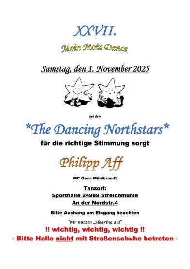 Darüber hinaus veranstalten wir einmal im Jahr unseren Moin Moin Dance, der gemeinsam geplant und durchgeführt wird.